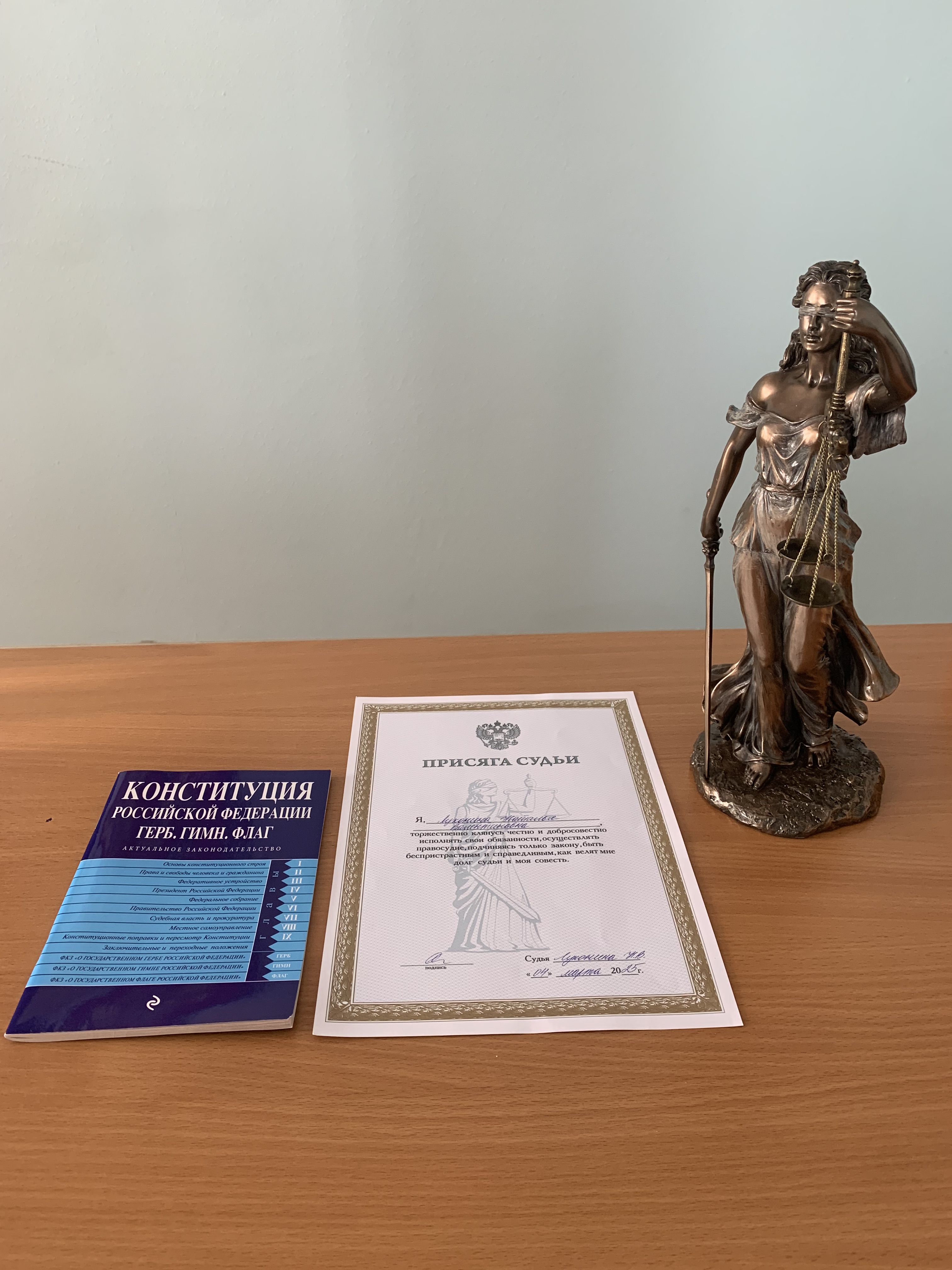 Указом ПрезидентаРоссийской Федерации от 21.02.2025 № 93 «О назначении судей федеральных судов и о представителе Президента Российской Федерации в квалификационной коллегии судей Калужской области» Луконина Наталья Валентиновна назначена на должность судьи Усинского городского суда Республики Коми. 4 Марта 2025 года в торжественной обстановке в Усинском городском суде Республики Коми Наталья Валентиновна приняла присягу. И.о. председателя суда Волкова С.Г. поздравила Луконину Н.В. с назначением на должность и пожелала успехов в осуществлении правосудия. ![]() |